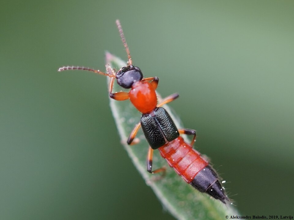 Der Käfer heißt Uferkurzflügler. Sein wissenschaftlicher Name ist Paederus littoralis.