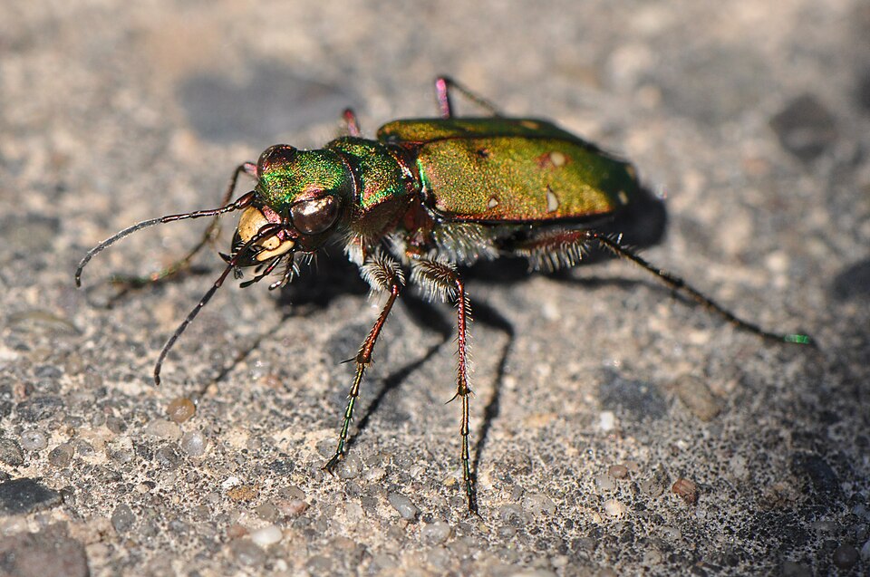 Der Feld-Sandlaufkäfer frisst kleine Insekten und Spinnentiere.