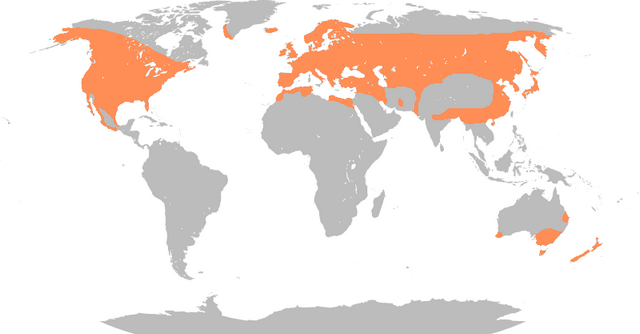 Ursprünglich lebte sie in Nordamerika, Europa, Asien und Nordafrika. Heute gibt es sie auch in Australien, Neuseeland und Südafrika.
