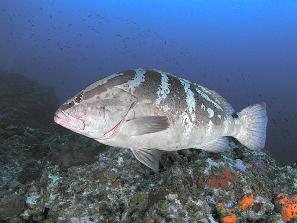 Nassau-Zackenbarsch (lateinisch: Epinephelus striatus)