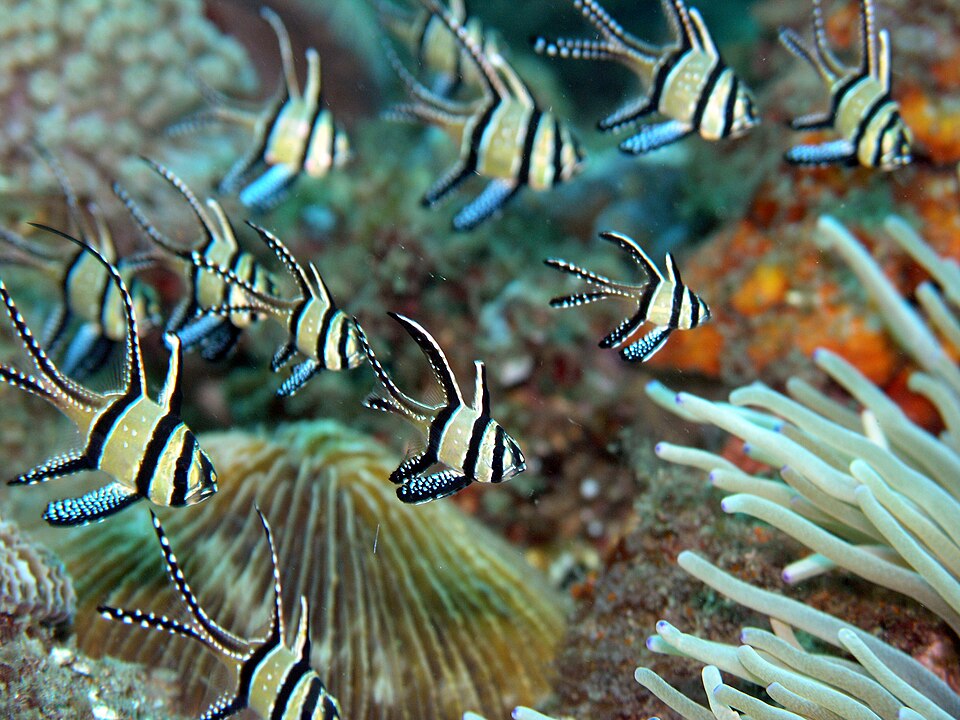 Der Banggai-Kardinalbarsch ist ein kleiner Meeresfisch. Sein wissenschaftlicher Name ist Pterapogon kauderni.