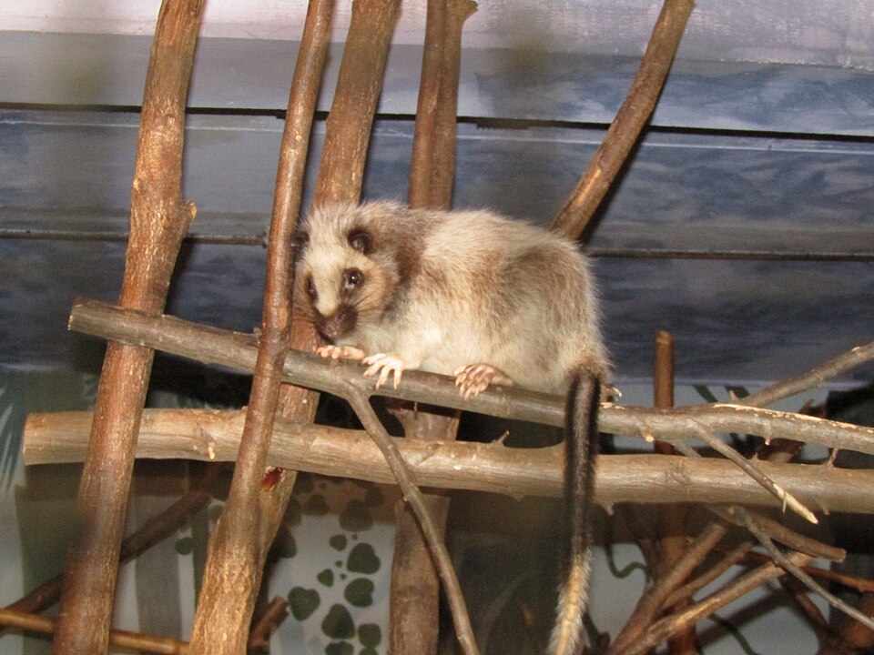 Ihr Schwanz ist schwarz und behaart. Sie hat kleine, runde Ohren, eine stumpfe Schnauze sowie lange Zehen und kräftige Krallen.