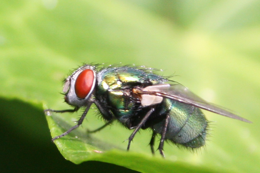 In offenem Gelände wie Grasland mit blühenden Pflanzen und faulig riechenden Pflanzen