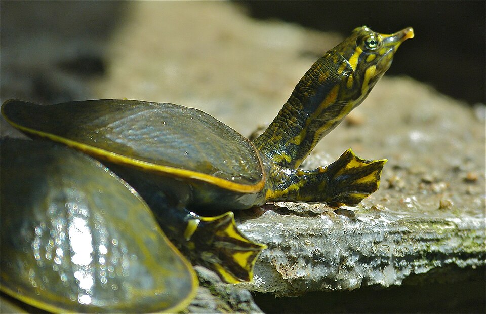 Sie gehört zur Ordnung der Schildkröten und zur Familie der Weichschildkröten.
