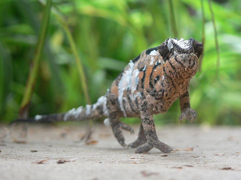 Es lebt allein und ist tagsüber aktiv. Chamäleons können sehr gut klettern und ihre Farbe wechseln.