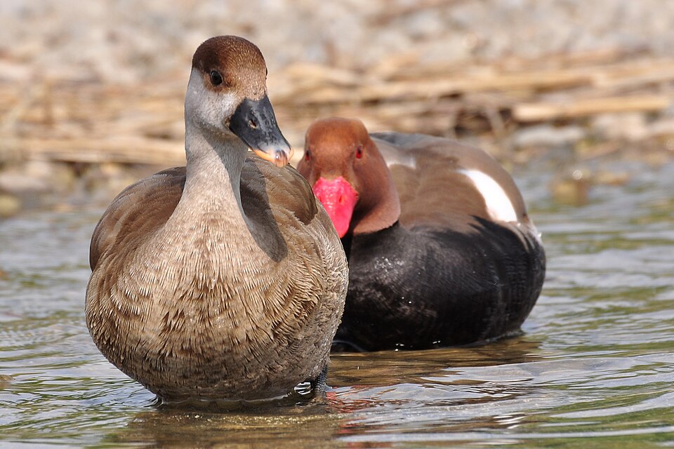 Die Kolbenente hat einen kräftigen Körper. Das Männchen fällt besonders durch seinen auffälligen Kopf auf.