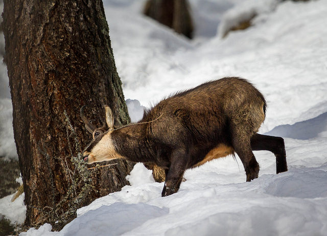 | Verhalten: | Gämsen leben meist in Rudeln von mehreren Tieren. Es sind oft einige Weibchen und ihre Jungtiere und ein Bock. |