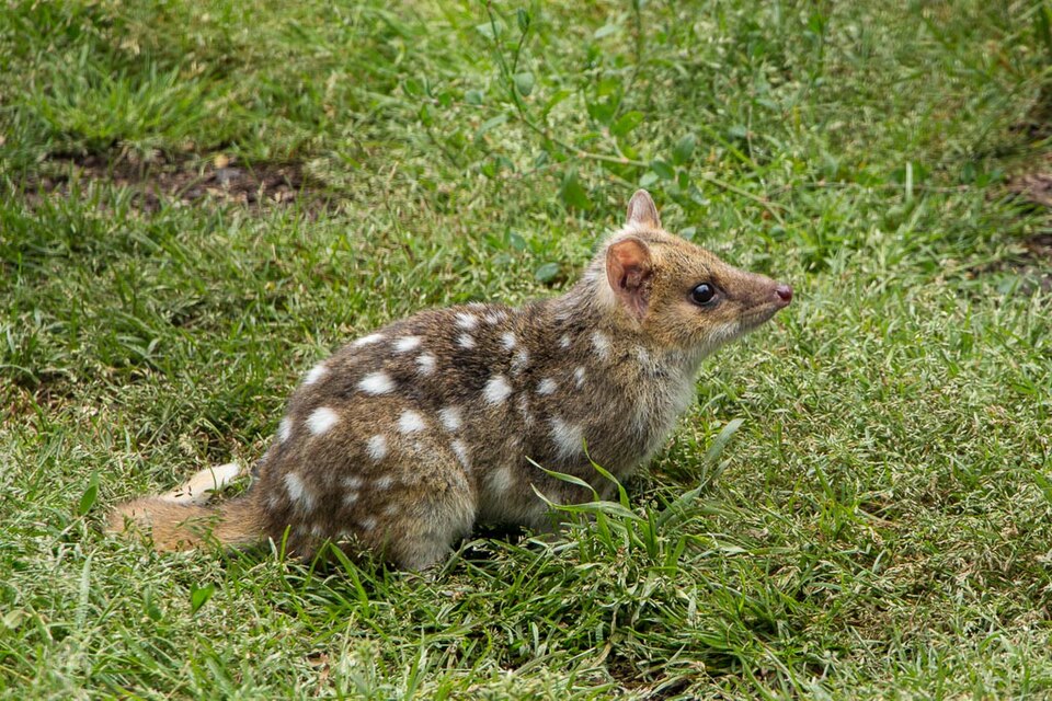 Der Tüpfelbeutelmarder heißt mit seinem lateinischen Namen Dasyurus viverrinus. Er gehört zu den Raubbeutlern.