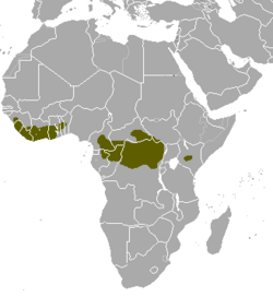 Der Bongo hat rotbraunes Fell mit weißen Streifen. Sowohl Männchen als auch Weibchen haben Hörner.