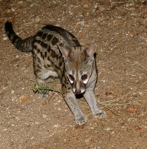 Die Kleinfleckginsterkatze heißt auf Latein Genetta genetta.